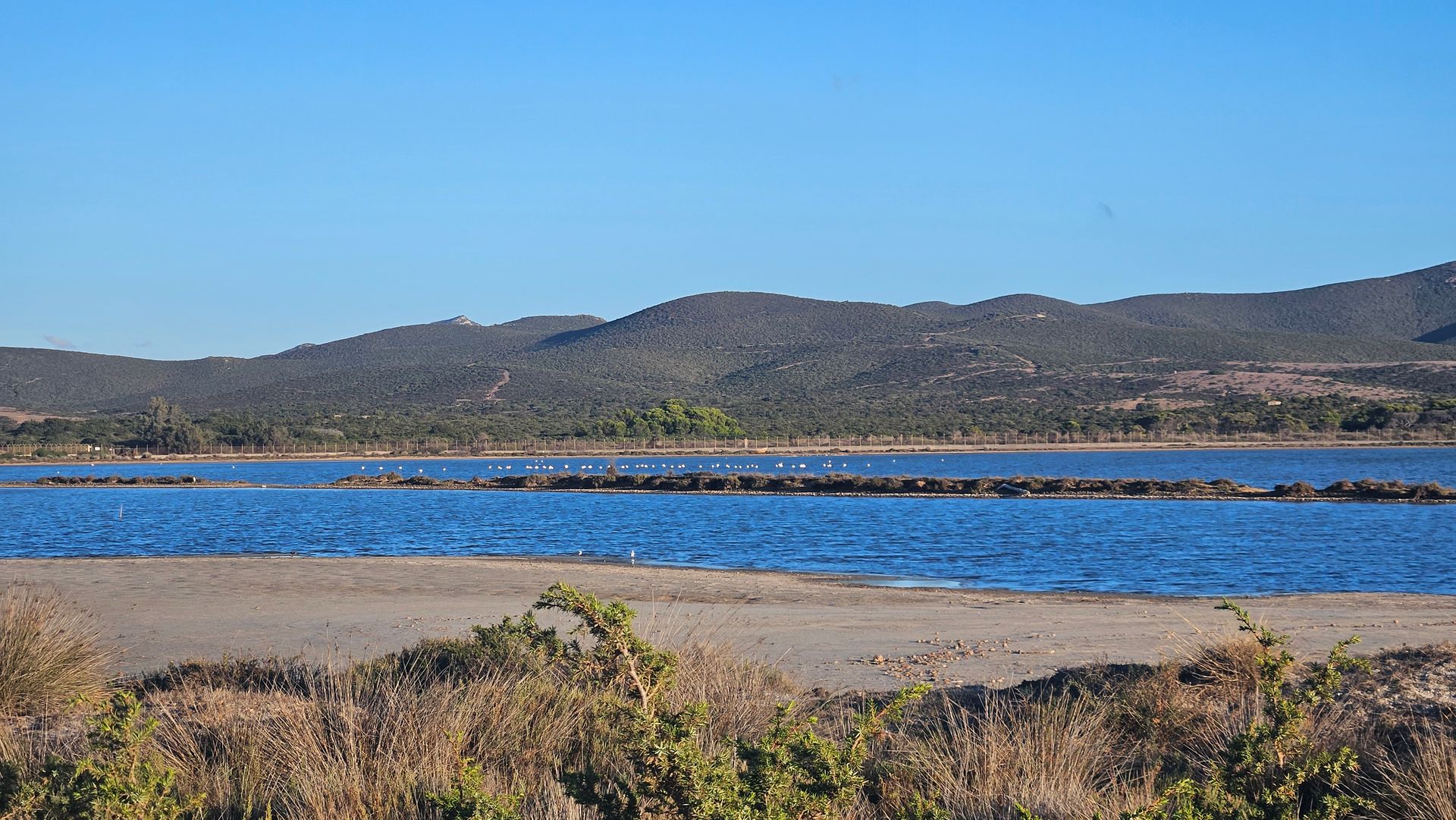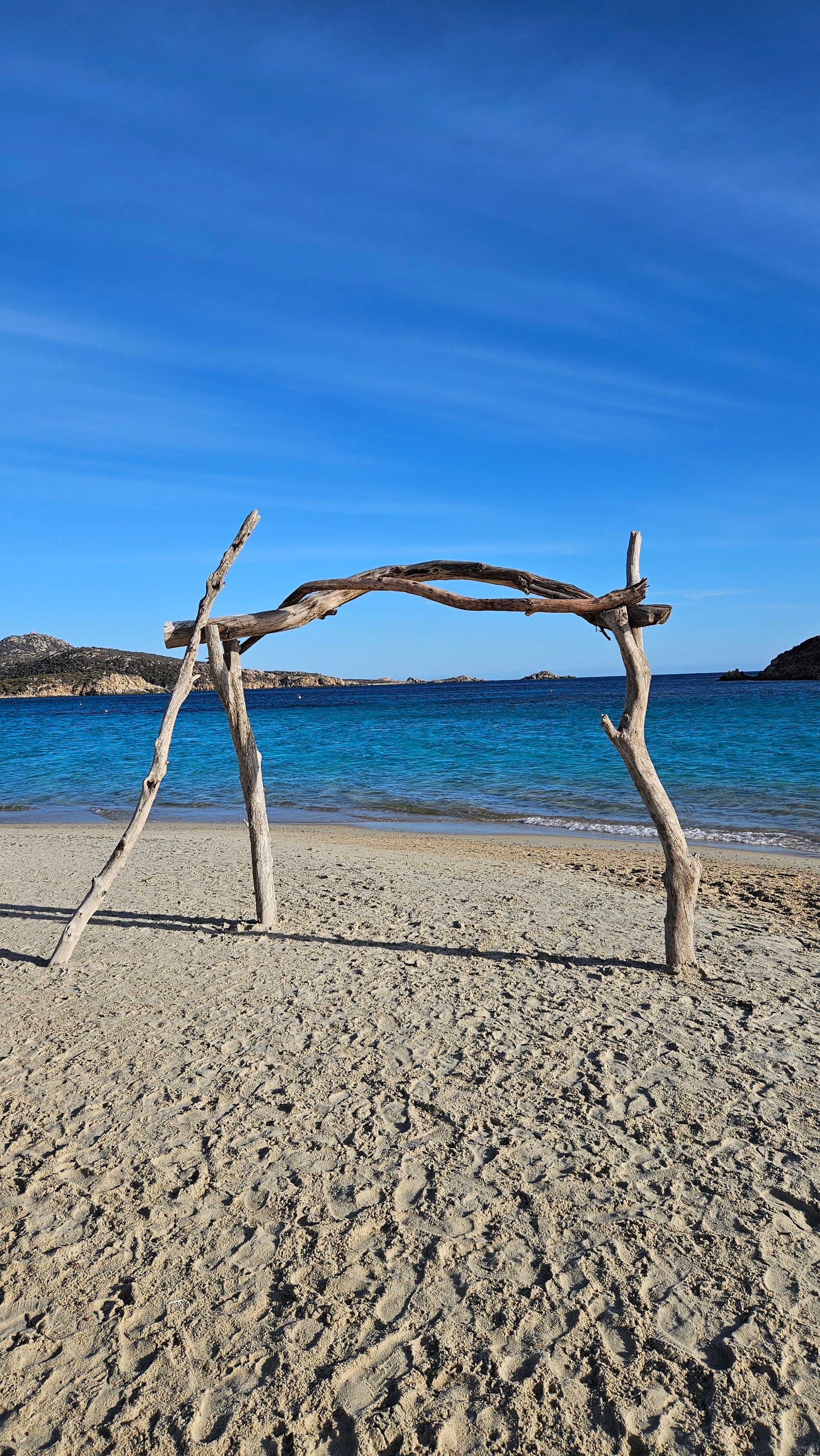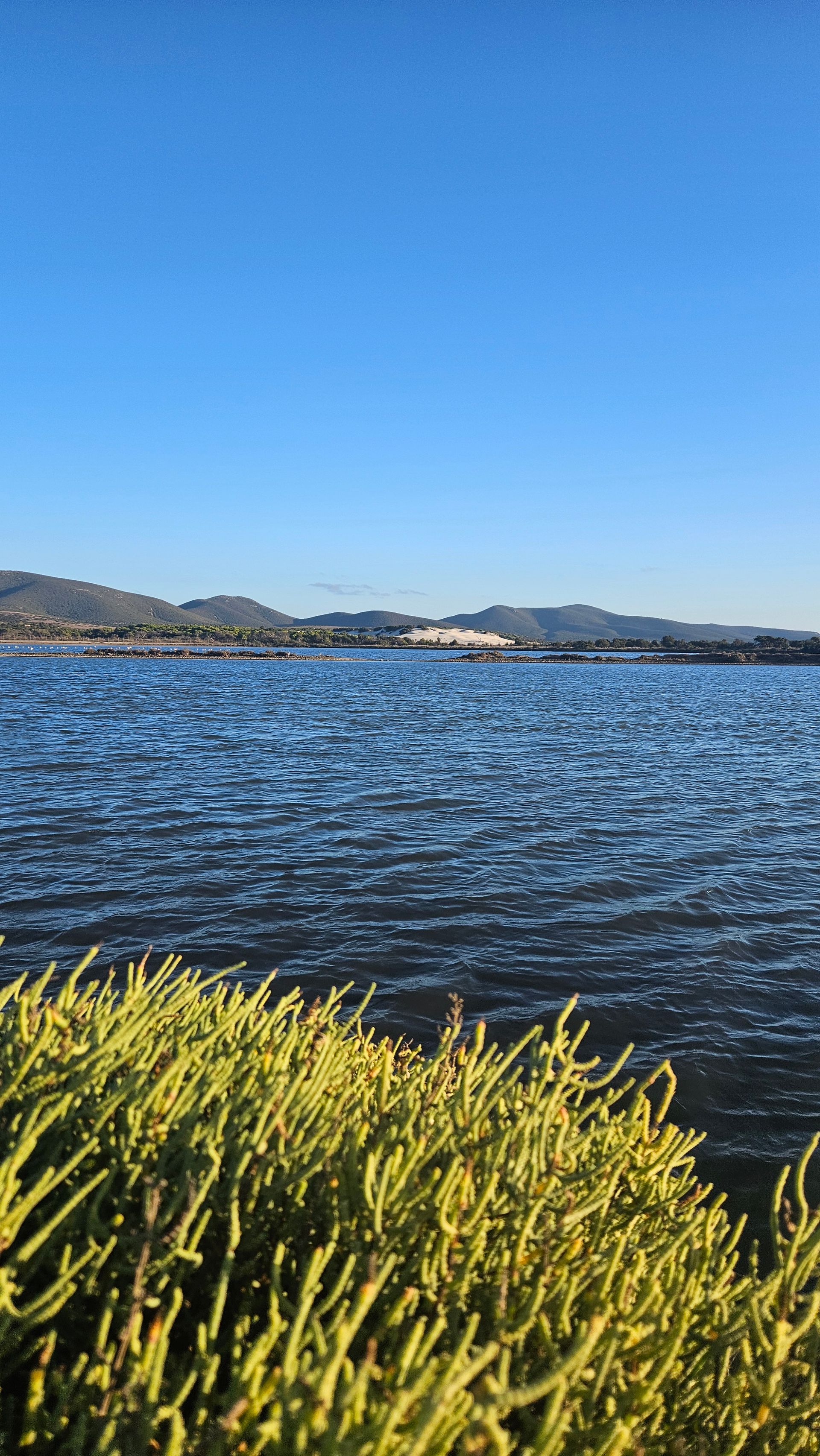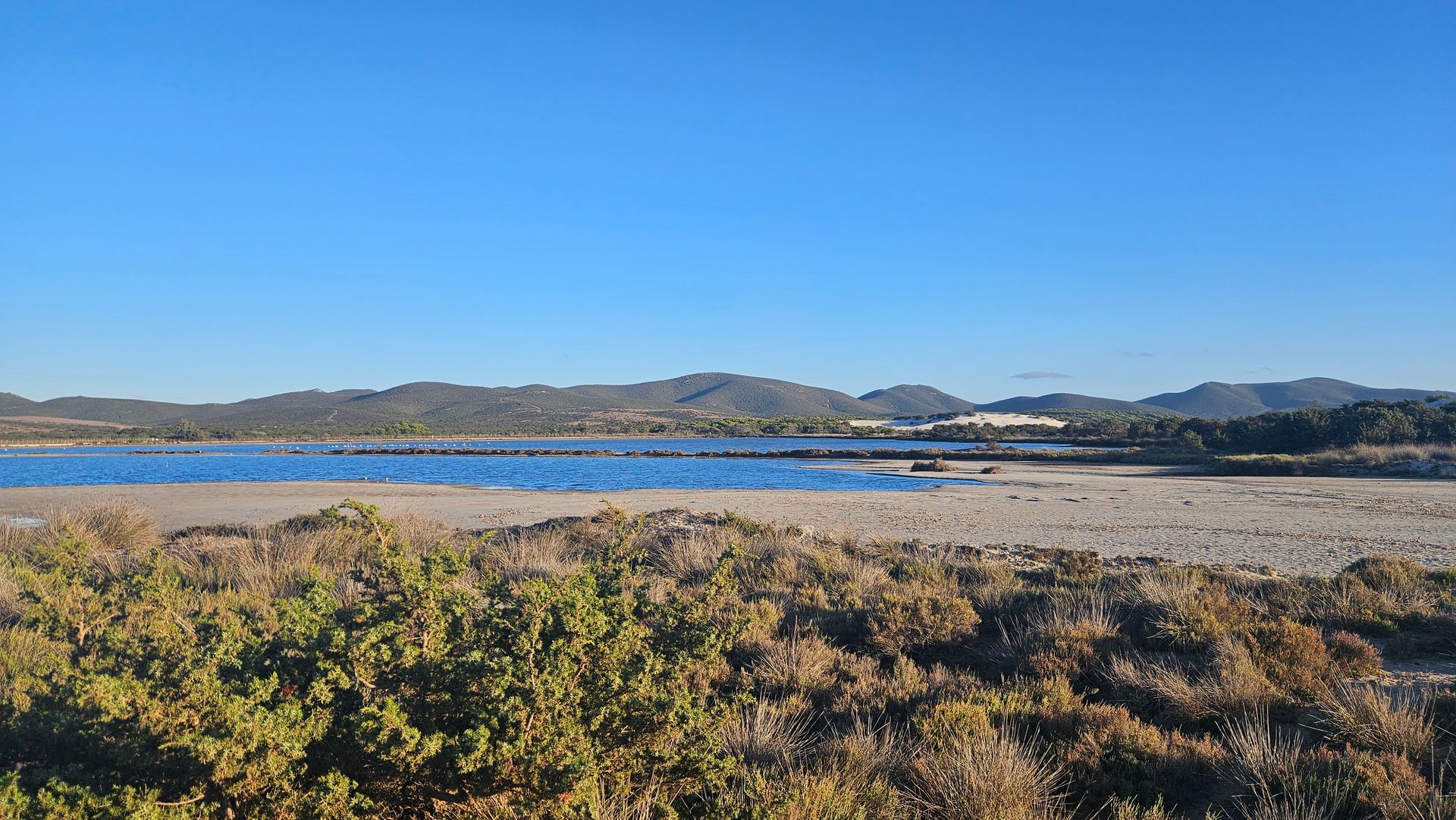 An den ersten beiden Tagen fuhren wir zum Spiaggia di Porto Pino. Die Anfahrt über eine etwas holprige Straße lohnt sich — der Strand ist weitläufig, der Sand fein und hell, und das Wasser flach und kristallklar. Vor allem: kaum andere Menschen. Ein Ort zum Durchatmen.